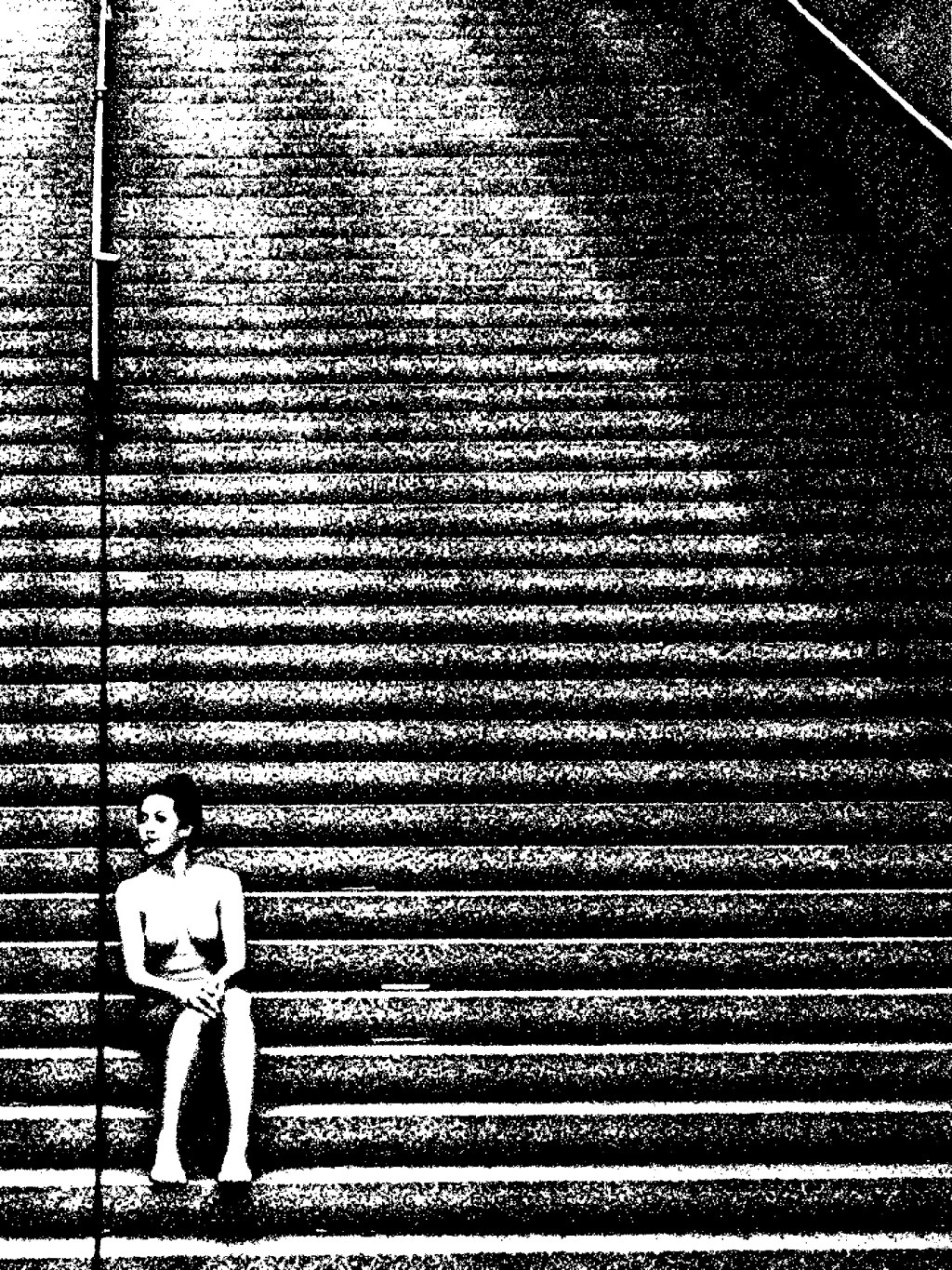 She sat where movement paused, where each step behind echoed louder than what lay ahead. The staircase stretched infinitely, a monument to indecision and solitude. Light carved a path she hadn’t taken—yet. There’s a quiet power in waiting, especially when the world expects motion. She wasn’t lost. She was choosing.
