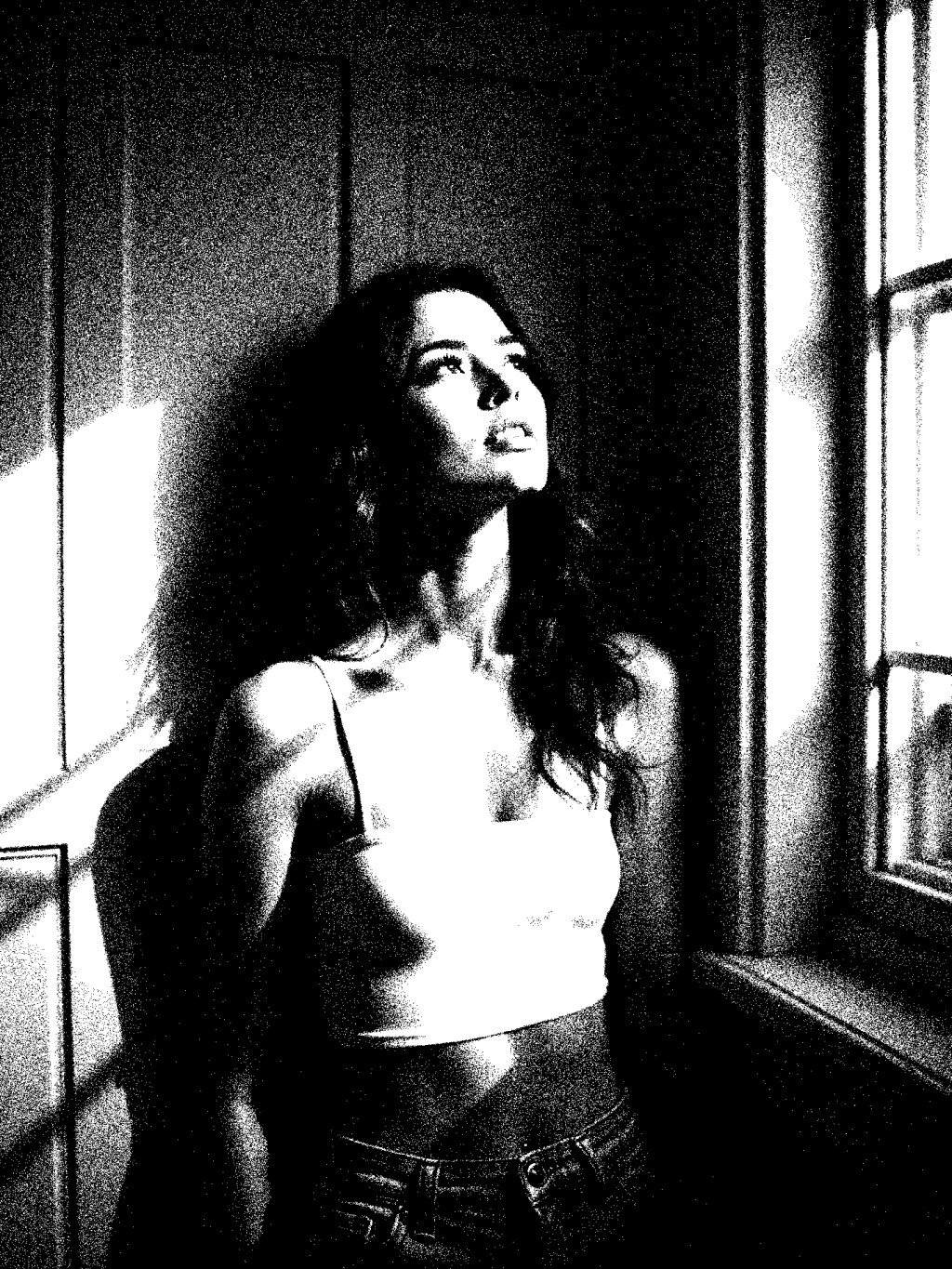 This moment was shaped in silence. The way her gaze reaches beyond the glass suggests something not yet spoken, a longing suspended in golden slivers of afternoon light.