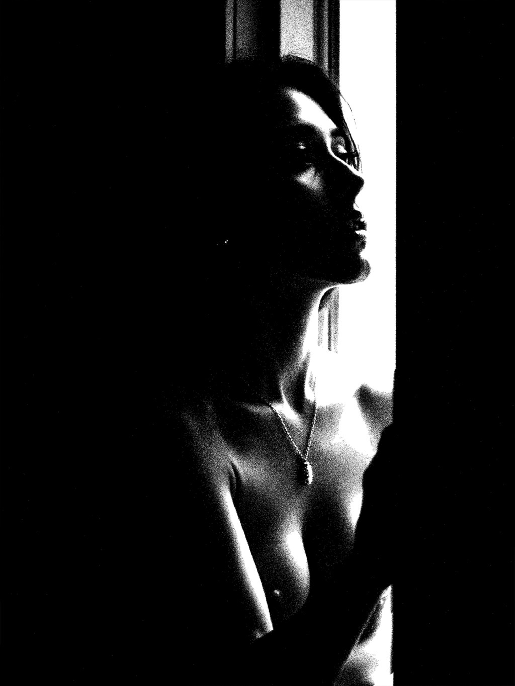 She stands at the edge of morning, not quite ready to let the dark go. The necklace catches a whisper of sun, like memory refusing to fade.