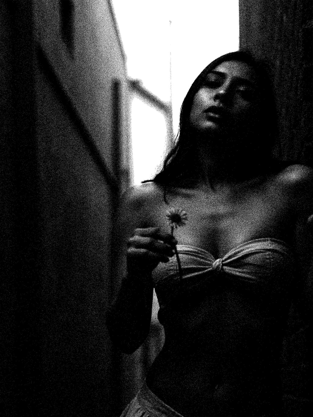 The last bloom of summer held too long, in a space too narrow for growing. Still, she offers it.