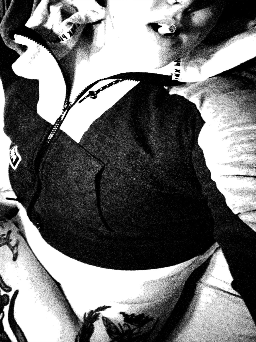 The casual zip, the tilt of lips holding smoke, the tattoos whispering beneath soft fabric—she radiates heat with zero effort. Beauty here is relaxed, but never small.
