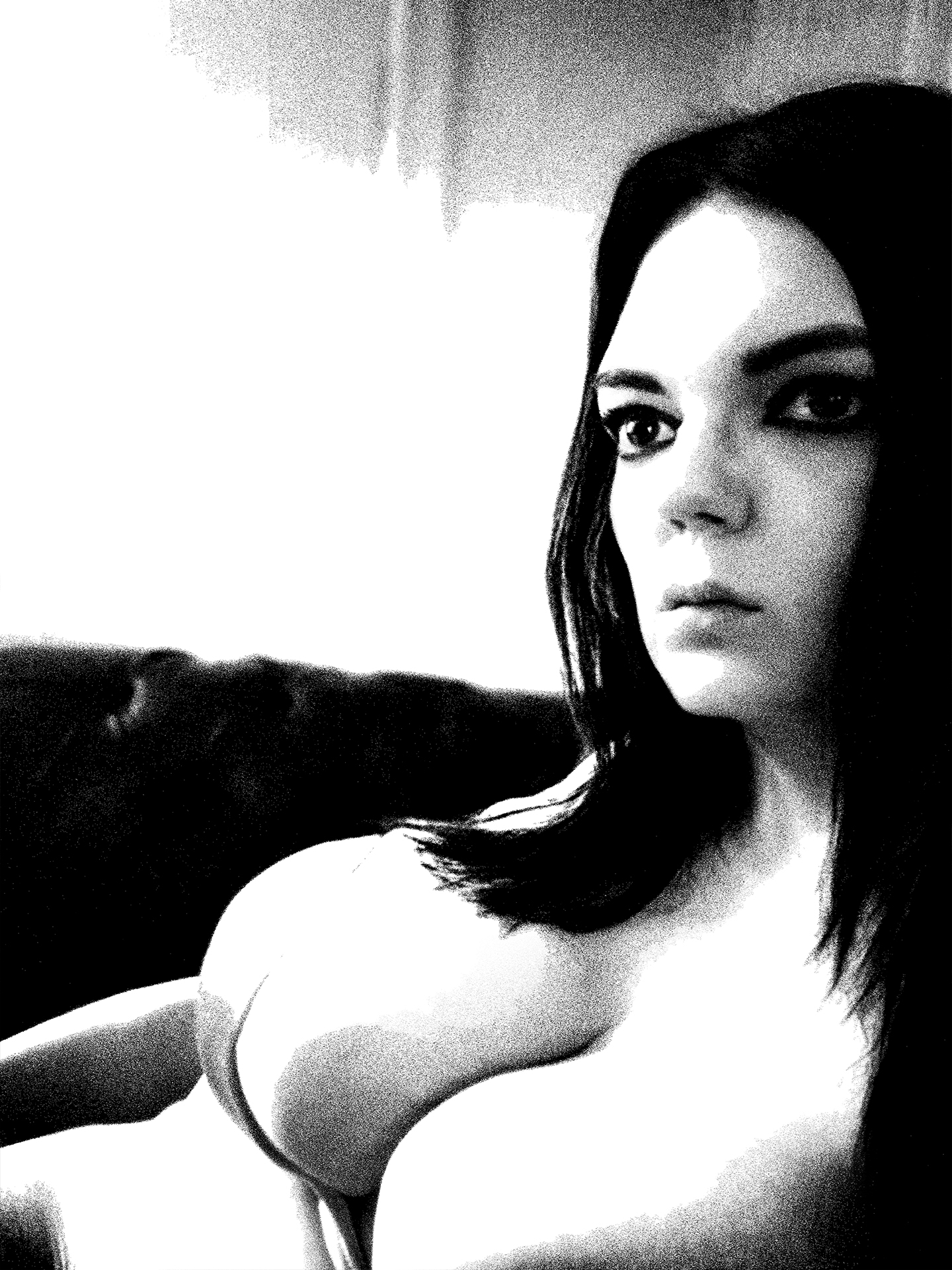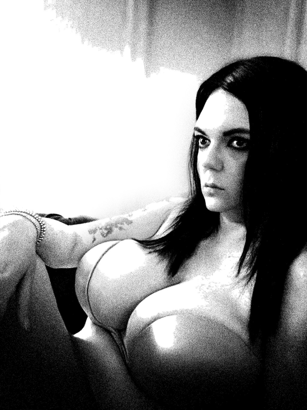 She sits like a vision carved from midnight—her beauty not loud, but luminous. The shadows don’t hide her; they honor her body, cradling every curve with reverence.