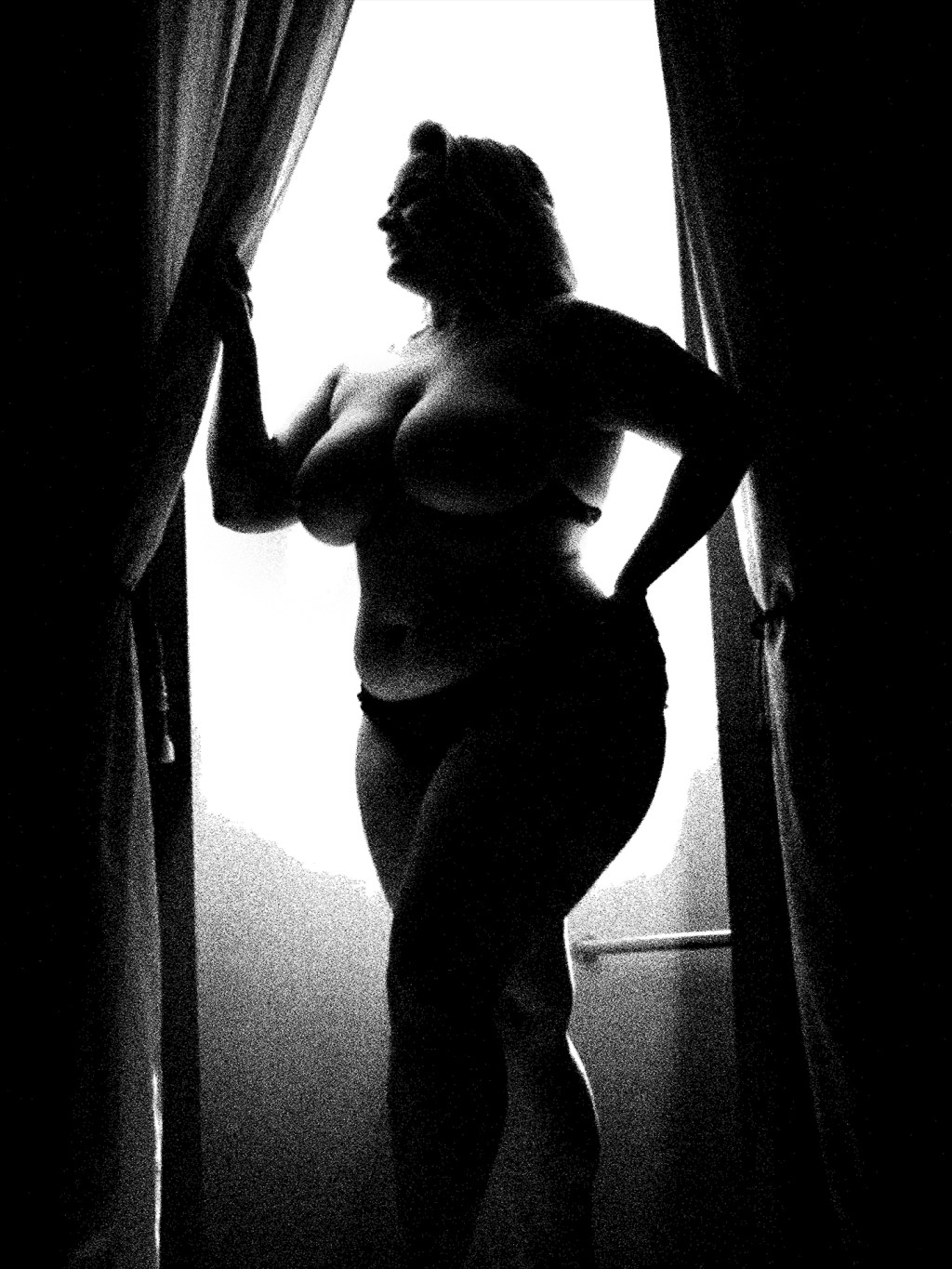She stands where light meets shadow, every curve a poem, every line a quiet rebellion. There’s power in her stance—not asking to be seen, but impossible to ignore.
