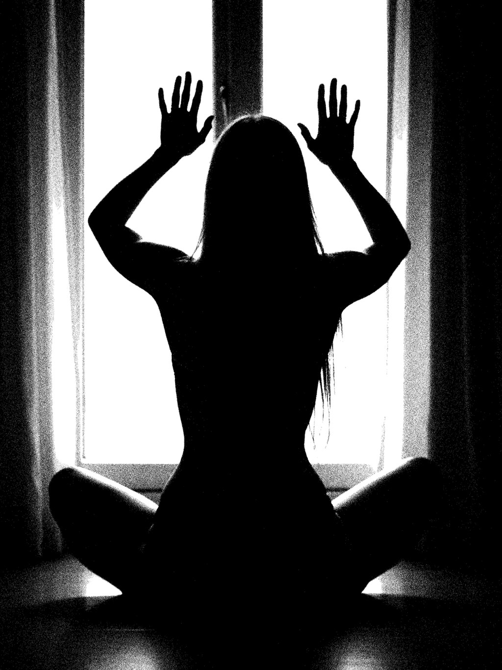 She sat in quiet defiance, hands lifted—she called to what couldn’t be seen, only felt. The window was her altar, the light a silent witness to her prayer.
