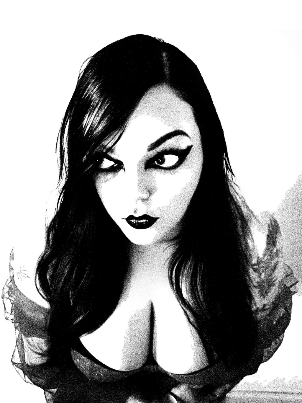 Her beauty is bold, unapologetic, and spellbinding. A goddess of contrast, wrapped in lace and mystery, she’s not here to be understood—only revered. She is the night’s desire in human form.