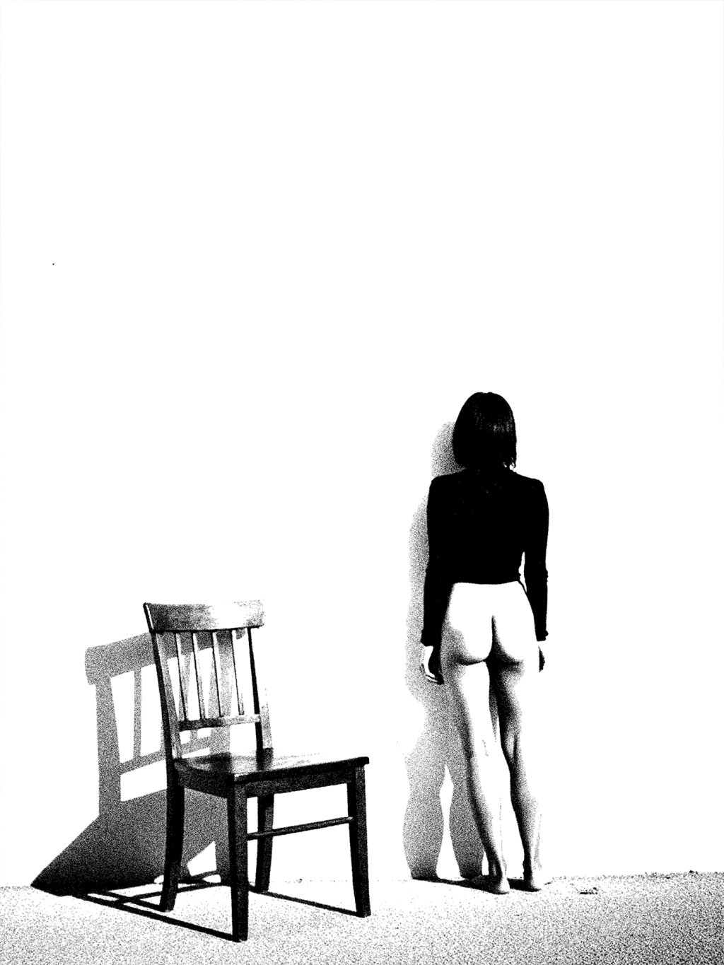 She turns away not out of shame, but power—claiming space with her presence alone. The chair waits, but she stands, unyielding. Every inch of her speaks rebellion and grace, a quiet defiance against expectation.