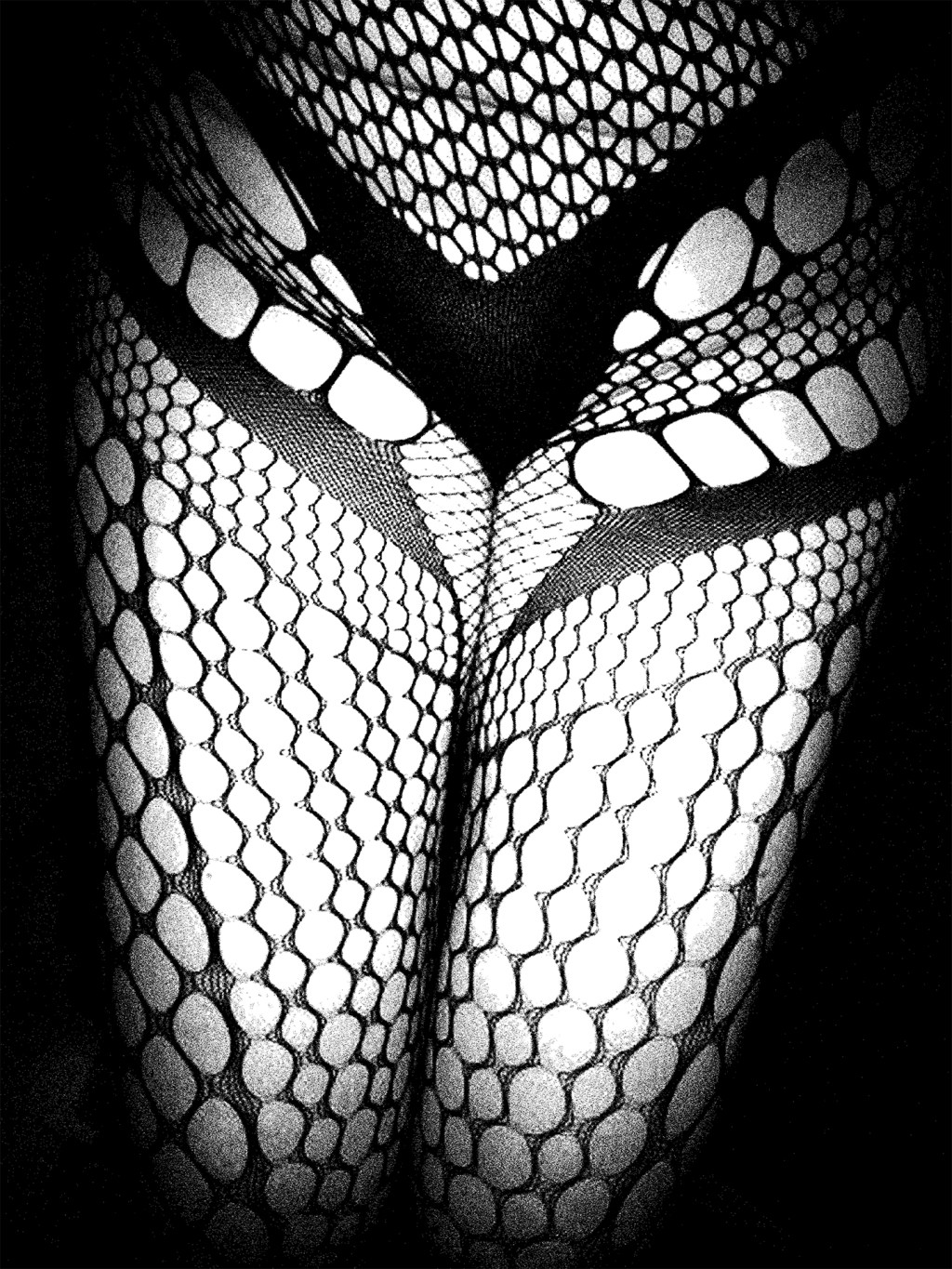 The body becomes a canvas where pattern and tension meet. Webs of symmetry pull the eye into a hypnotic rhythm of curves and contrast.