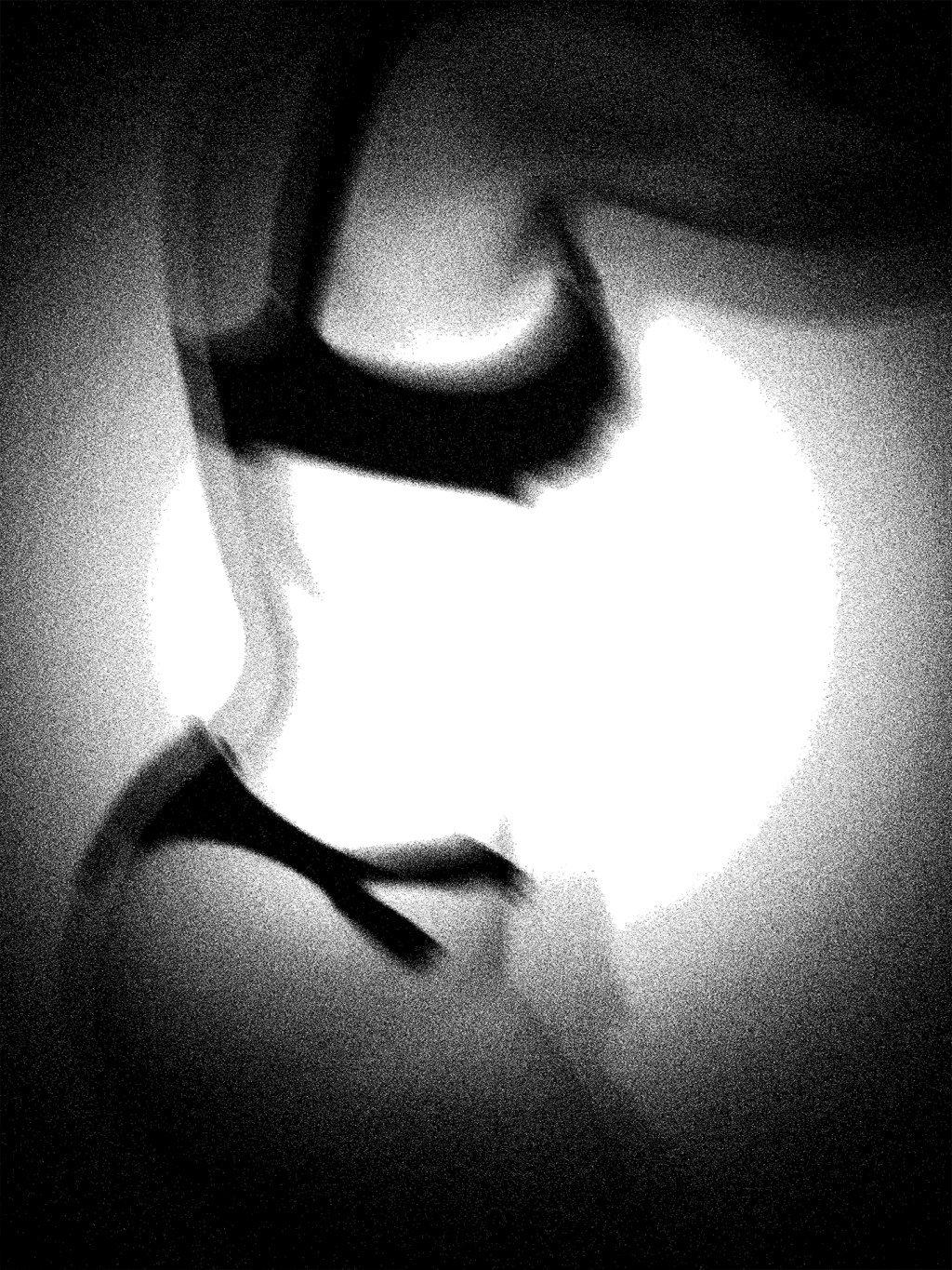 A gesture caught mid-breath, dissolving into shadow. The form becomes rhythm, a blurred whisper of motion across a glowing silence. There’s something primal here—almost remembered.