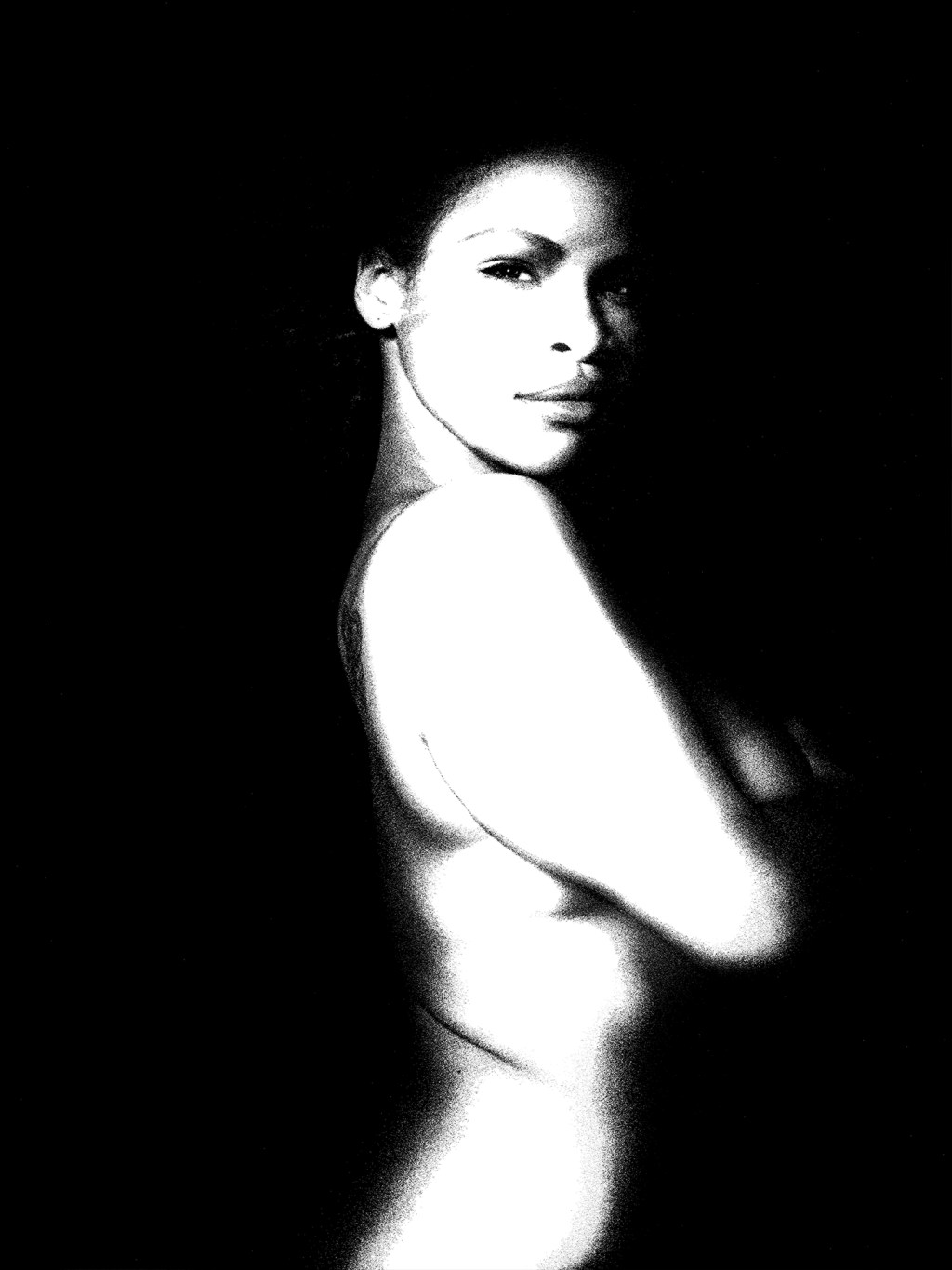 Strength radiates from her stance, yet softness lingers in the curve of her form. Shadows cradle her while light reveals a beauty both fierce and tender, unshaken and eternal. She is power and grace, drawn from the quiet fire within.