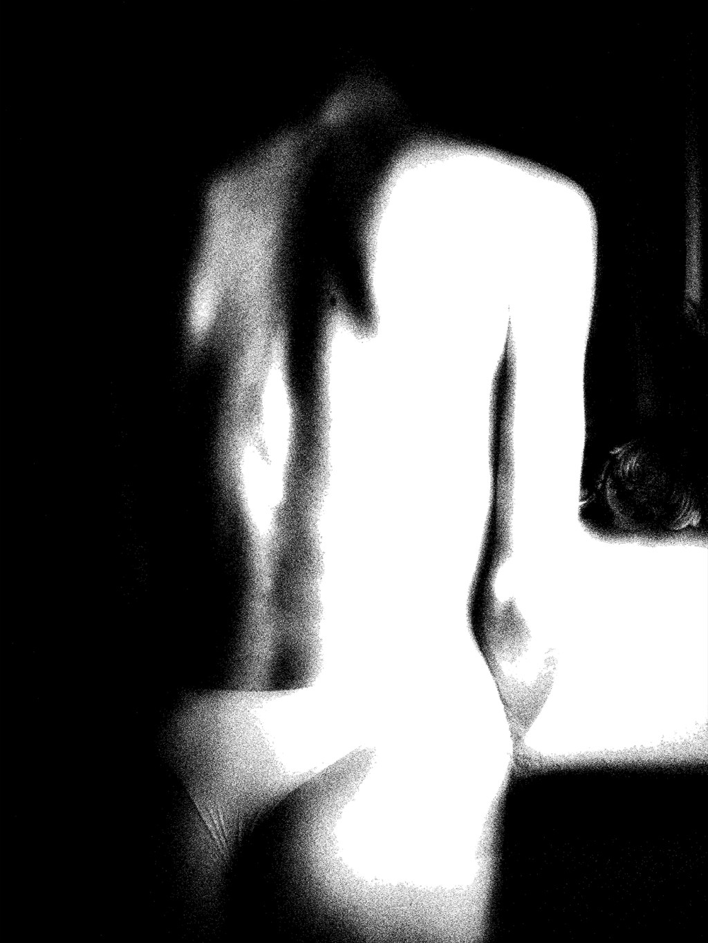 A sculpture of shadow and light. Every curve tells a story of vulnerability and strength, an unspoken beauty carved into the night. She does not need a face here—her body alone becomes the whisper.