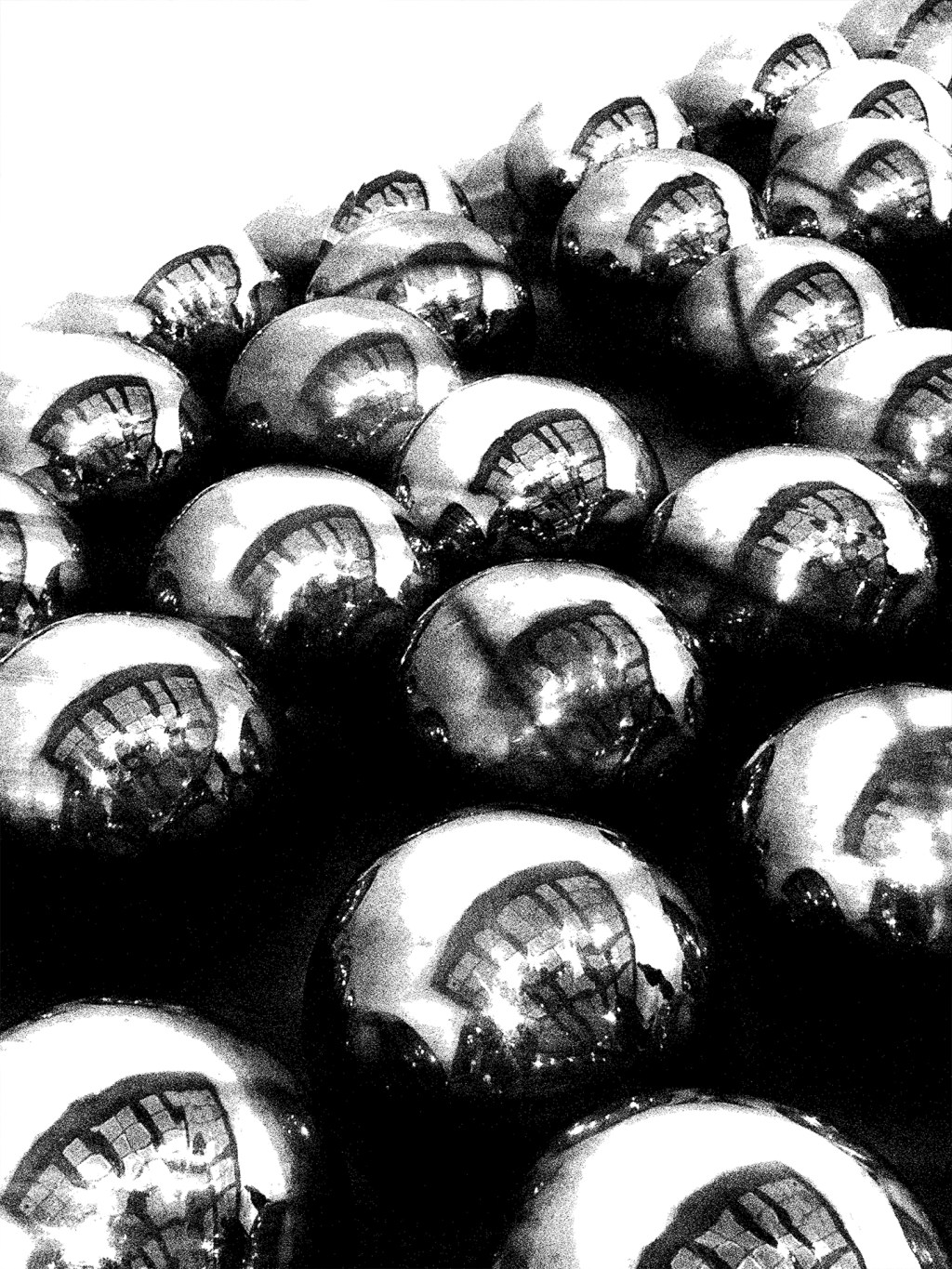 Each sphere holds a world inside, a distorted memory of walls, windows, and light. Together, they seem infinite—an army of mirrors whispering the same truth in different tongues.