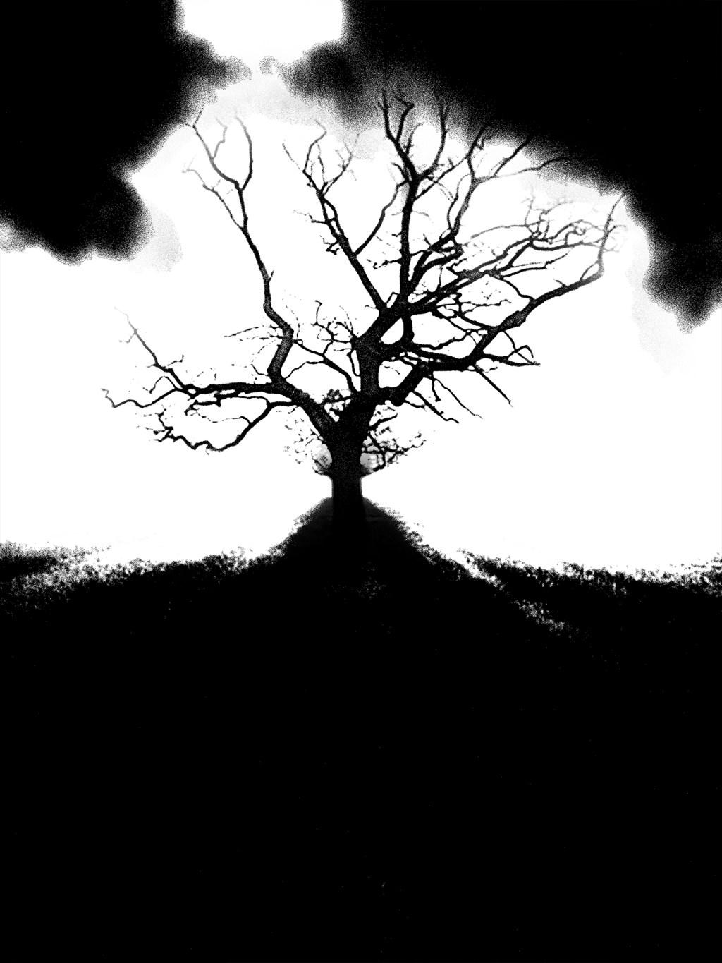 Alone on the hill, the tree rises like a scar against the sky, its twisted branches clutching at the light. Every limb tells of storms endured, roots gripping silence as if memory itself keeps it upright.