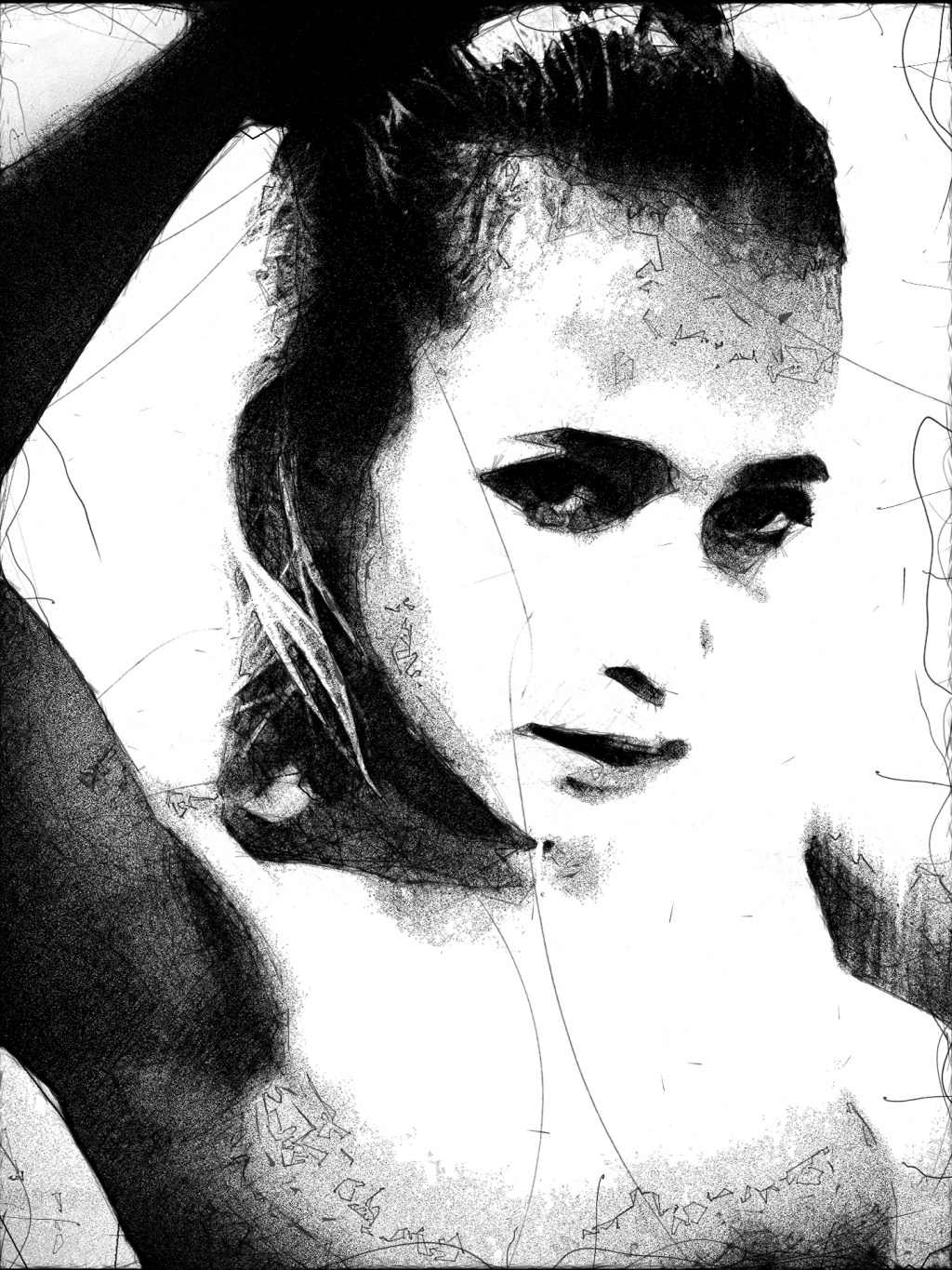 Her gaze cuts through the silence like a blade, fierce yet tender, wild yet calm. Shadows cling to her expression, but within them glimmers the softness of a secret fire. She is strength sculpted in light, beauty carried with defiance, and a quiet storm waiting to be unleashed.