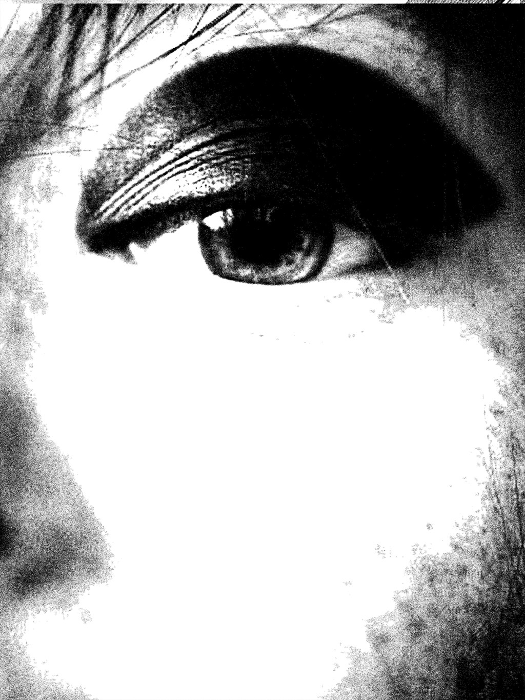A single eye, sharp and unblinking, painted in heavy shadow. It feels like both a secret kept and a story told without words. Beauty sharpened into intensity.