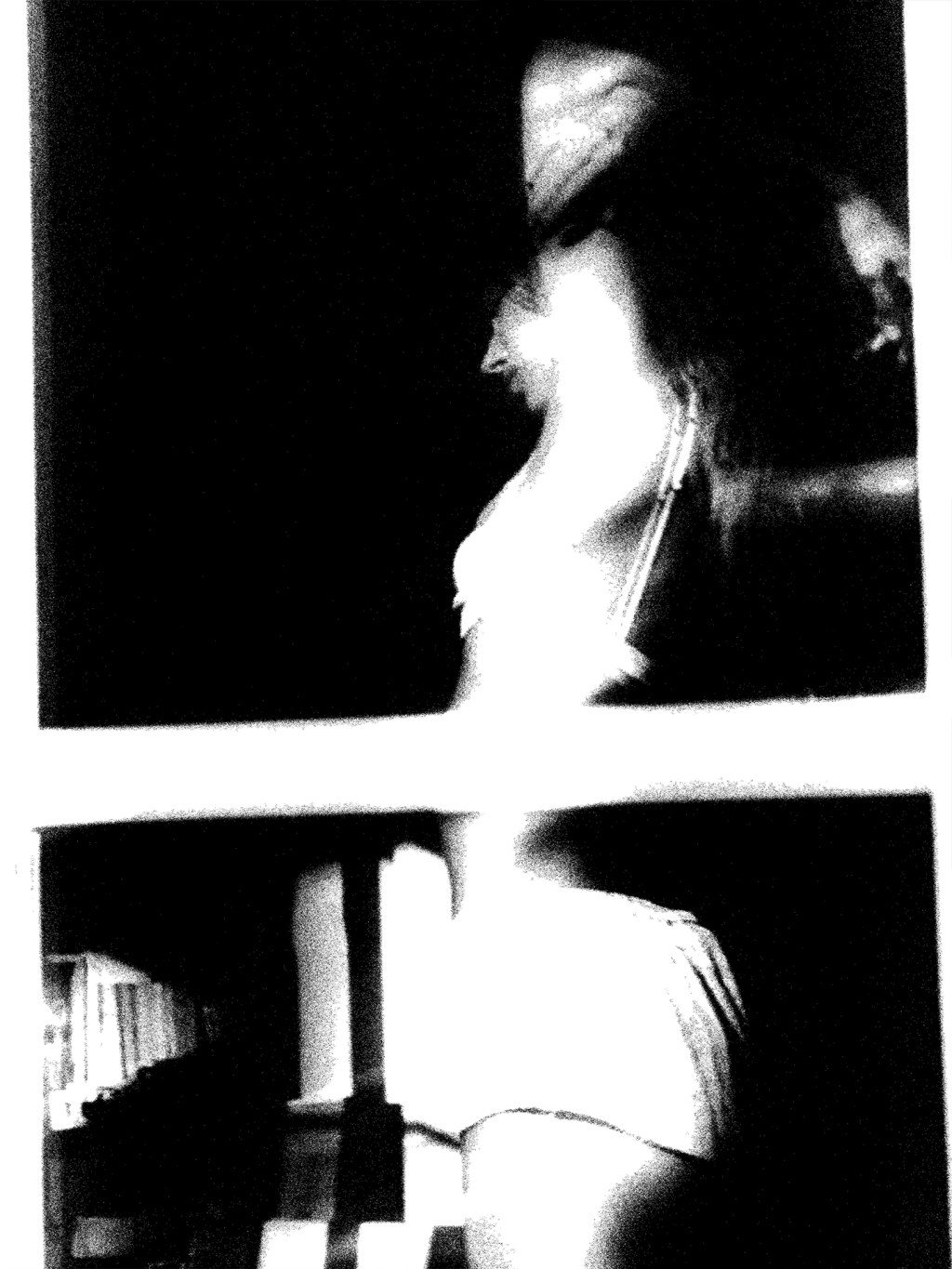 Caught in motion, her body leans into light while shadows break it apart. The window divides the scene, turning intimacy into something distant, almost unreachable.