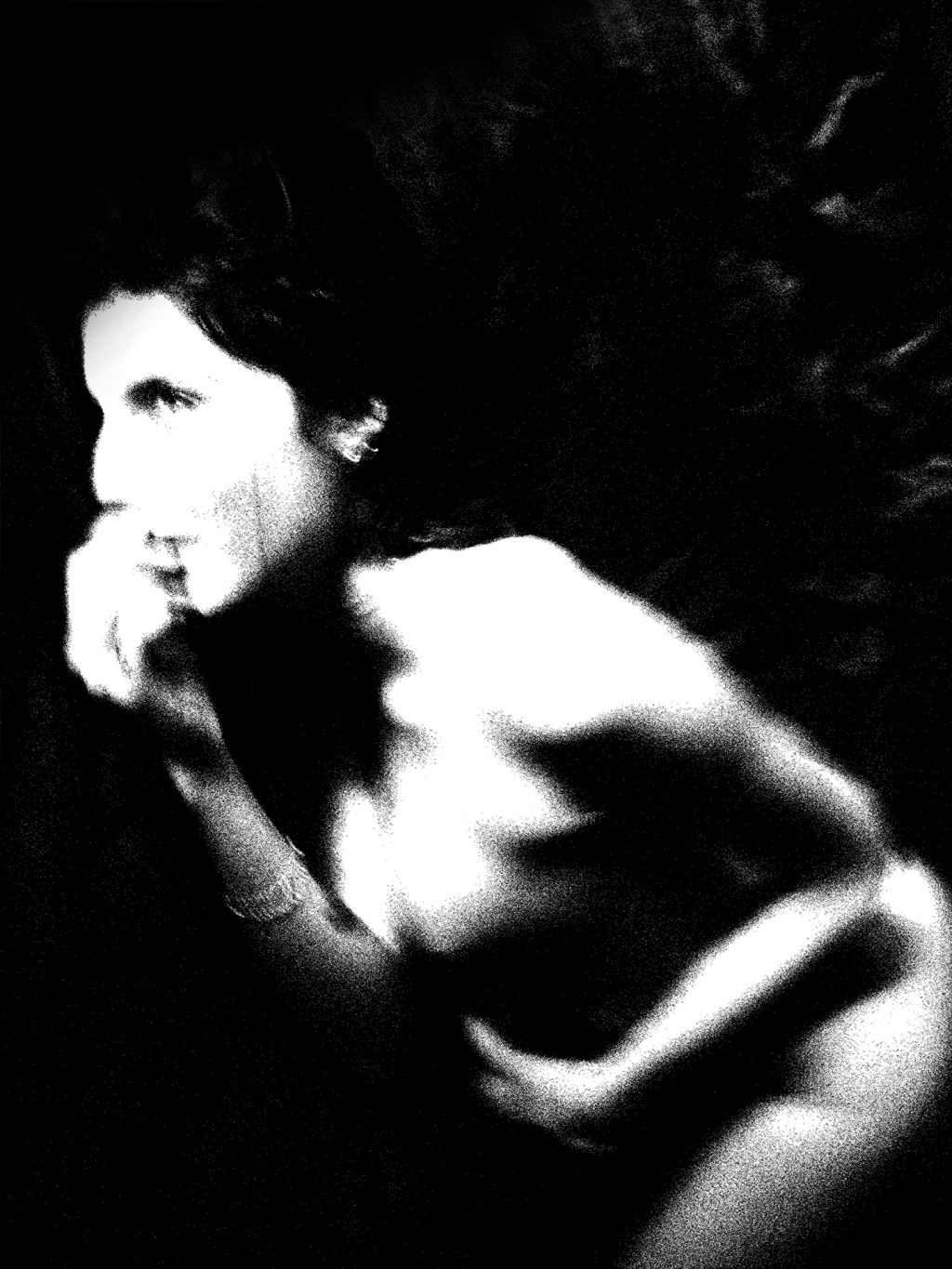 She emerges like a secret half-spoken, a fleeting silhouette caught between shadow and flame. The grain, the blur, the raw edges—everything conspires to make her feel both near and untouchable.