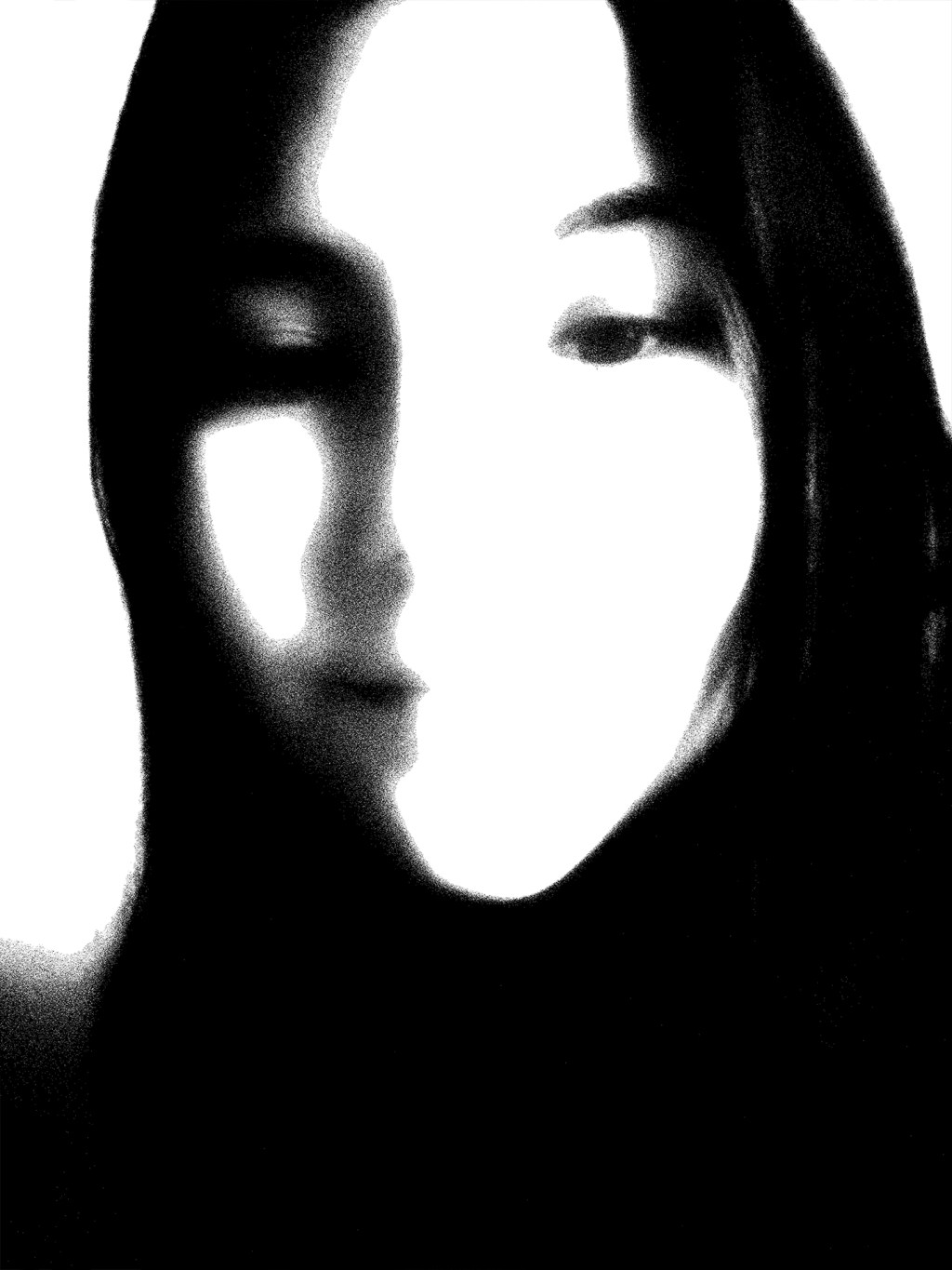 A face dissolved into contrast,half revealed, half concealed. Whispers of identity fractured, yet whole in its haunting silence.