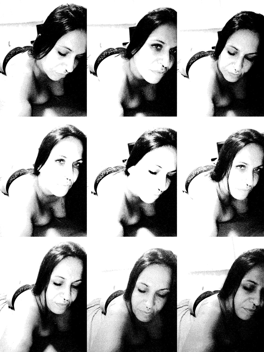 A single moment refracted into many—each frame a heartbeat, a breath between thought and vulnerability. Repetition becomes rhythm, and rhythm becomes intimacy. The quiet variations reveal not difference, but depth.