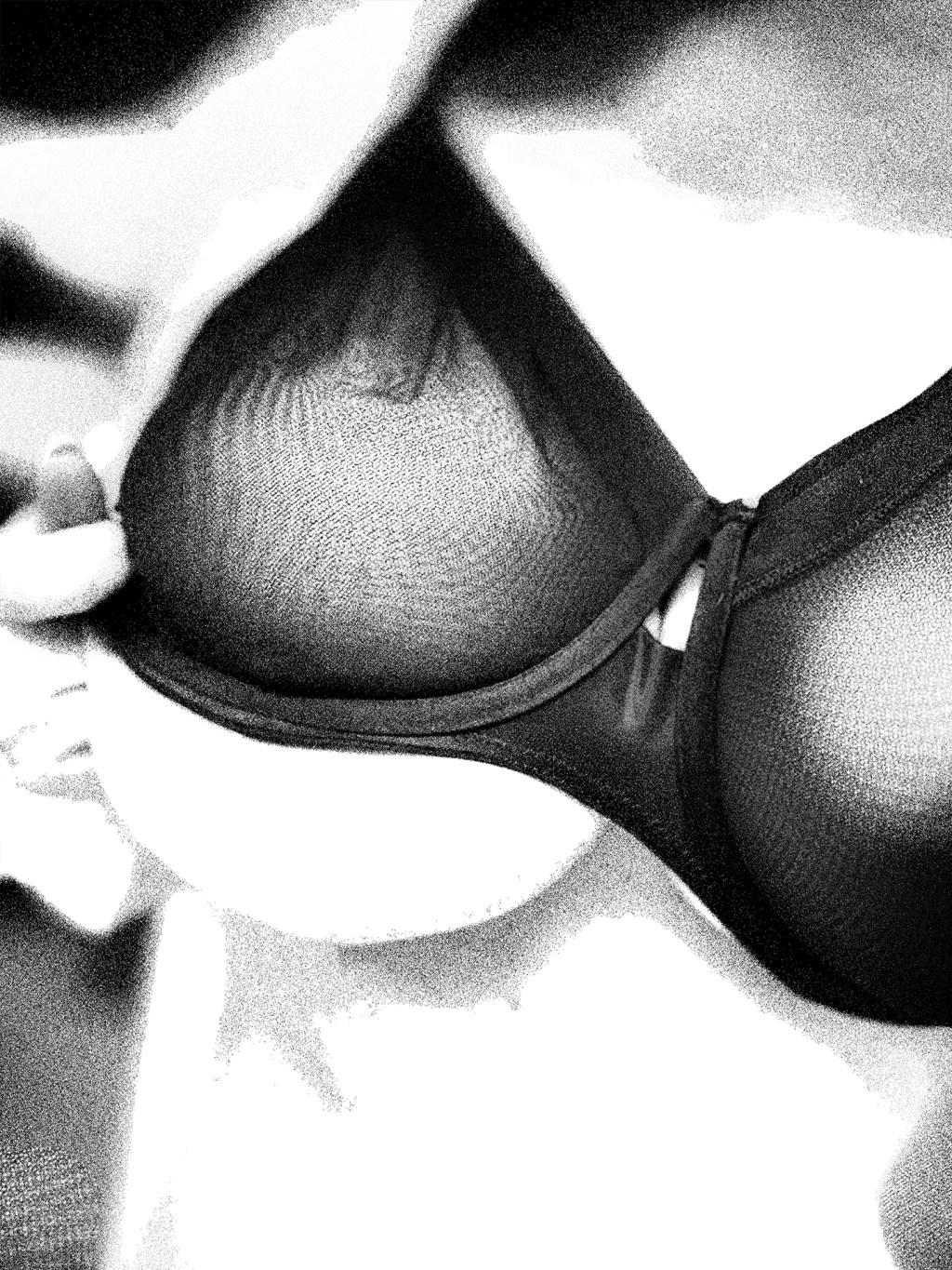 Light curves along her body, tracing edges like a whisper. The bra becomes a veil, both revealing and protecting. It’s not the body that speaks here—but the tension between exposure and restraint.