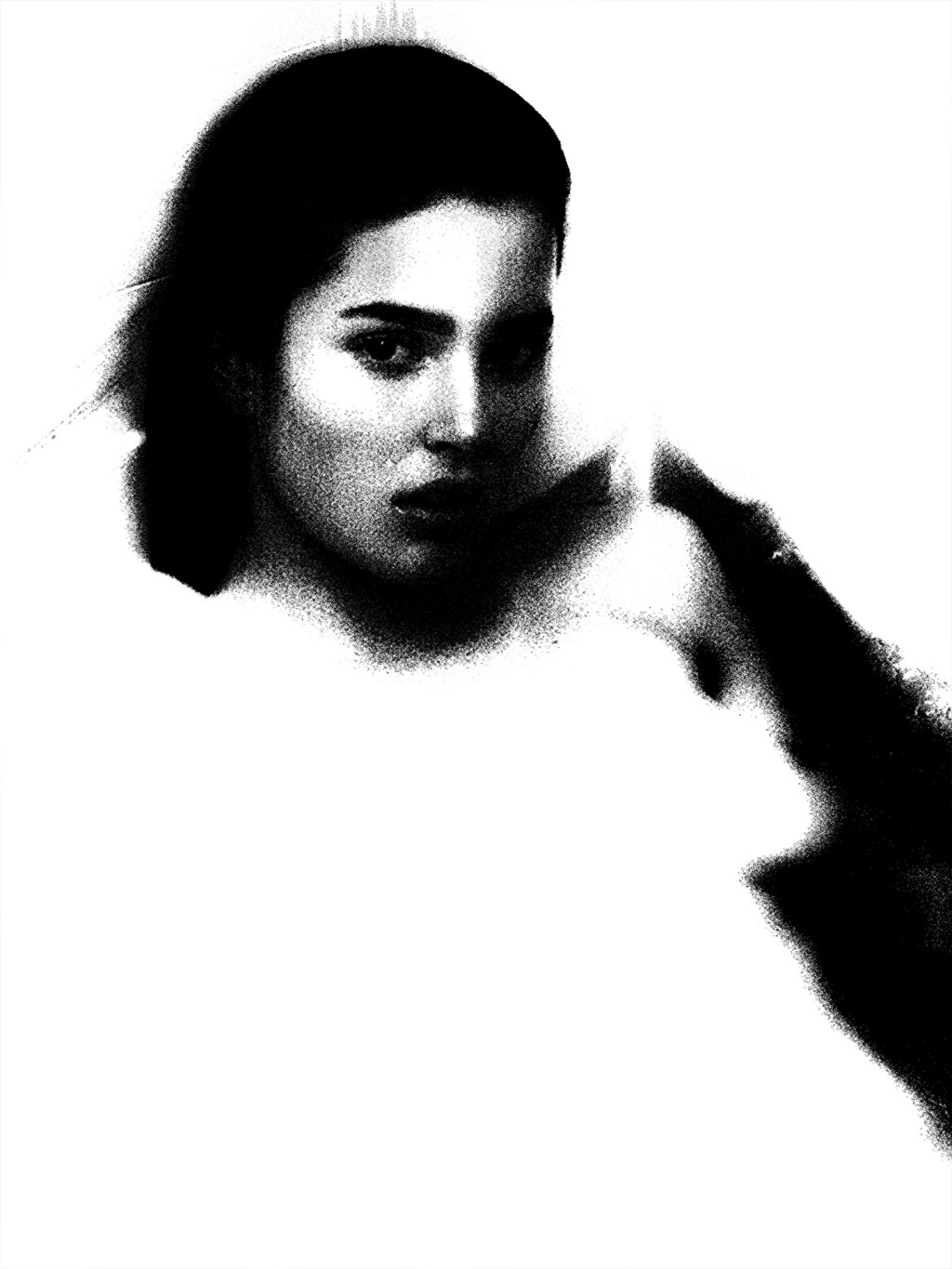 Softness and shadow meet where her gaze lingers — a quiet strength framed in light. The contrast doesn’t divide; it reveals. Between presence and absence, she exists like a secret the light is trying to remember.