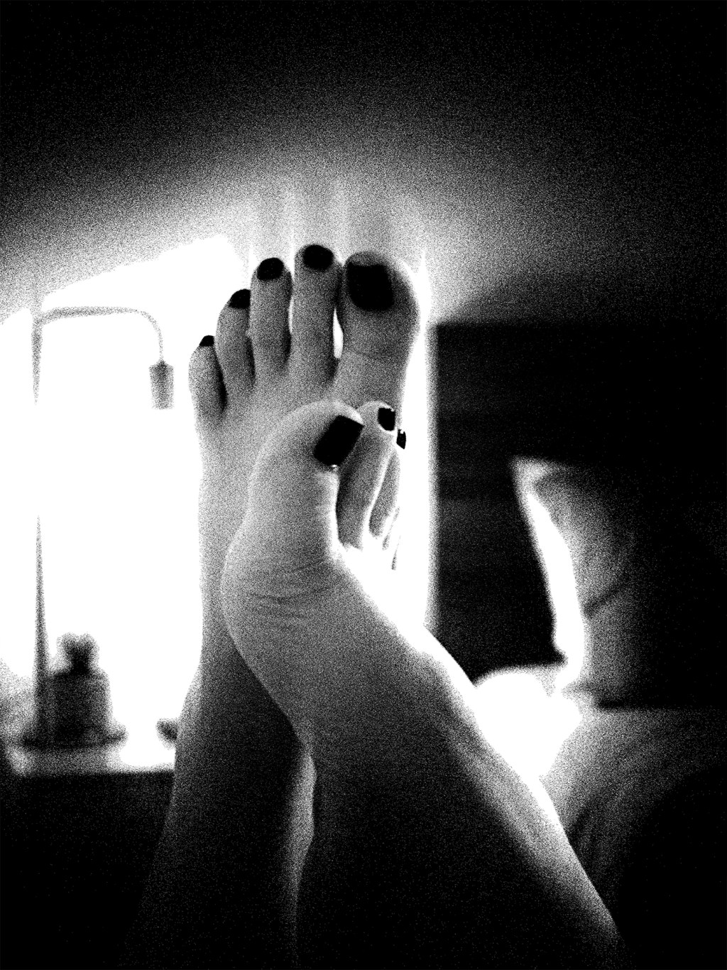 Morning light spills across quiet defiance — a stretch, a sigh, a refusal to rush. The small details of the body become their own language: painted nails, crossed feet, the intimacy of existing unhurried.