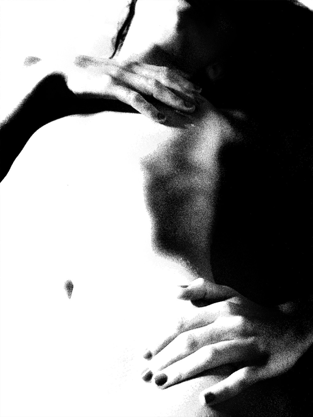Hands trace the soft geography of being — a quiet ritual of touch and awareness. Between tension and release, the body becomes its own prayer, an echo of breath folded into shadow.