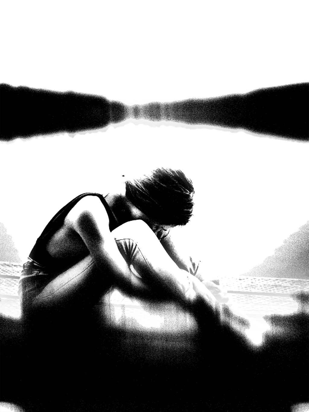 Folded into herself, she becomes reflection — a silhouette suspended between water and sky. The stillness hums softly, as if the world holds its breath for her to exhale. In solitude, she is whole.
