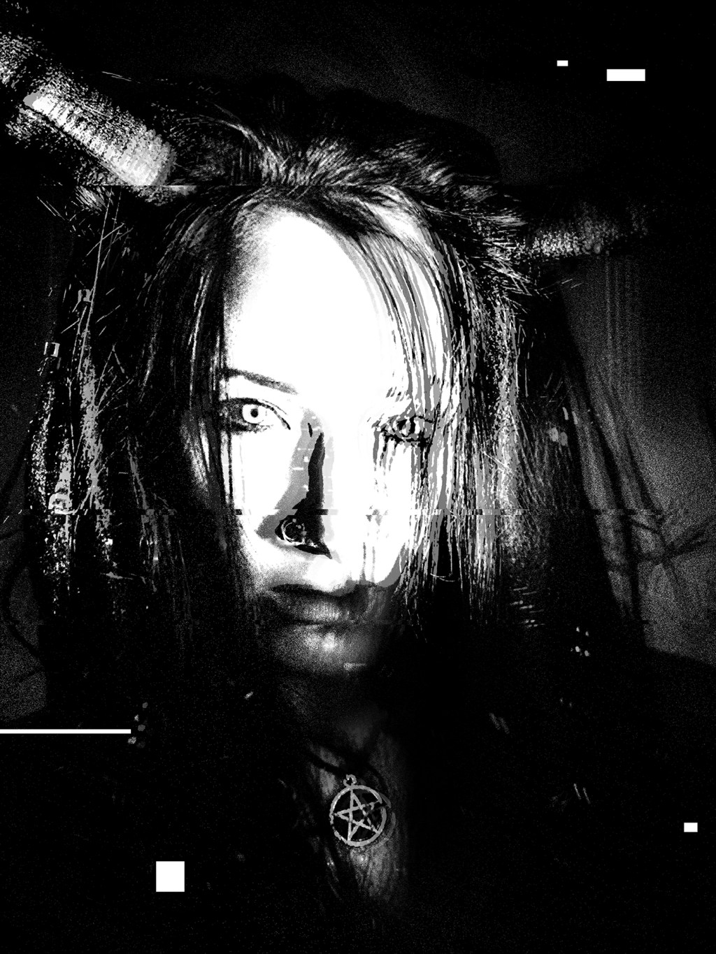 She wears shadow like silk — unafraid, unbound. There’s fire in her calm, a sacred power in the way she meets the void without blinking. Darkness doesn’t consume her; it crowns her.
