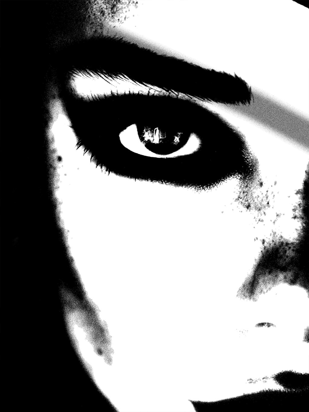 An unblinking stare pierces through shadow, holding a thousand untold confessions. Within that single eye, reflection becomes revelation—light bending into memory, truth folding into silence.