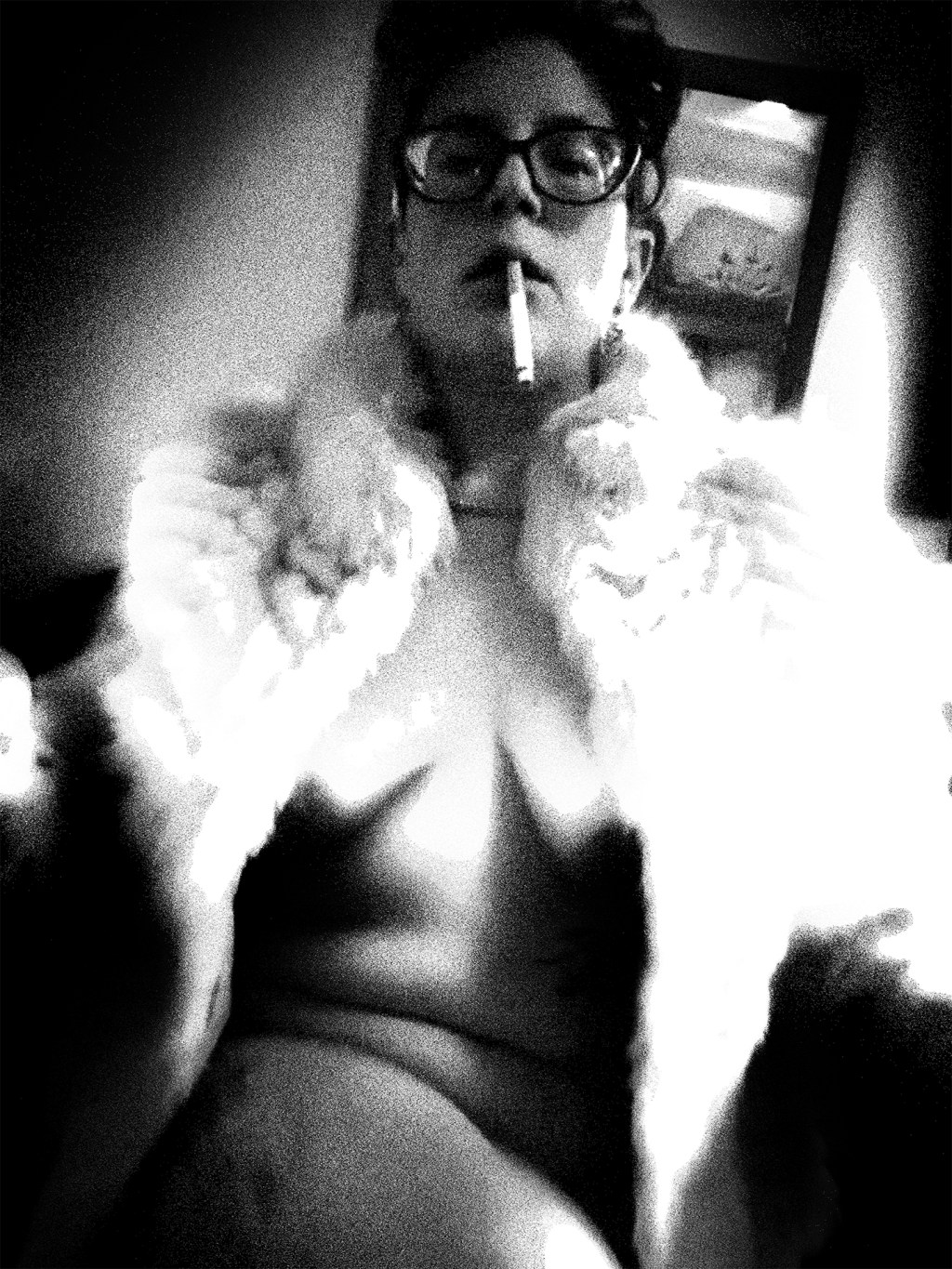She sits like defiance itself, unbothered, magnetic, the smoke from her cigarette curling around her like a crown. The fur brushes her shoulders, but it’s her confidence that truly clothes her. Every shadow amplifies her strength, she doesn’t ask to be adored; she demands to be seen, and in the haze, she is unforgettable.