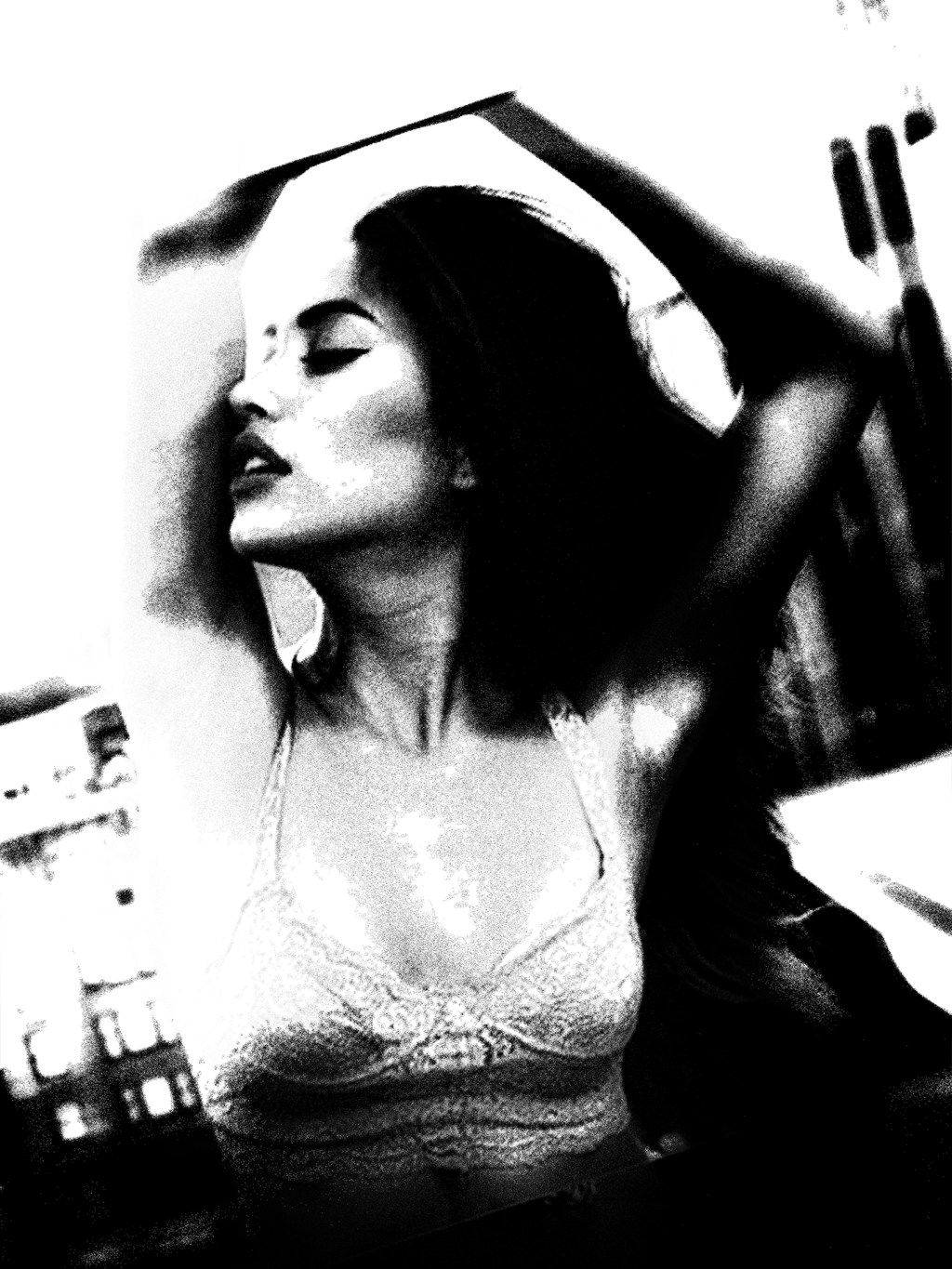 Caught between surrender and awakening, she rises into brightness as if remembering herself. Shadows trace devotion across her skin, turning the ordinary into something divine.