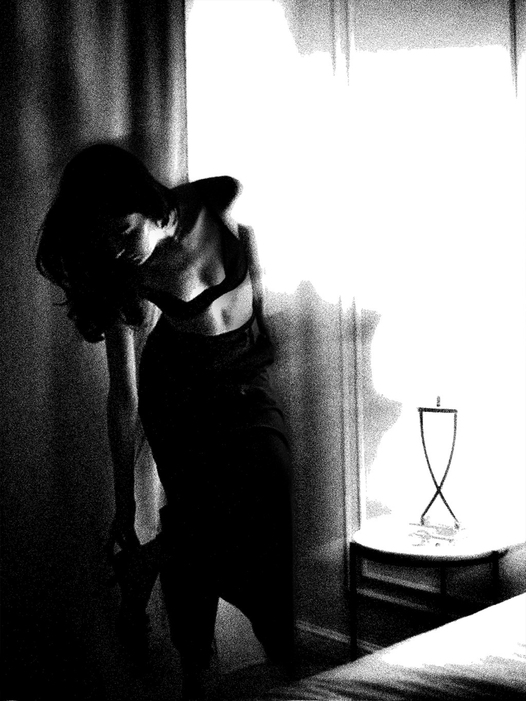She bends toward the dim light, caught between departure and remembrance. Shadows gather around her like old lovers, tender and uncertain. The glow beside her hums with what lingers unsaid.