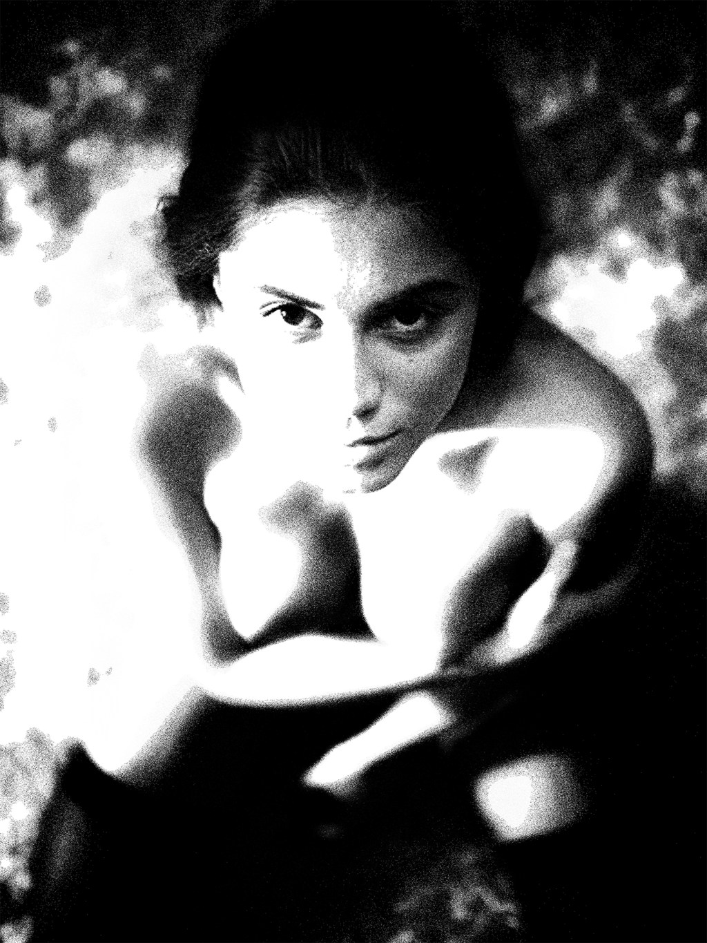 Half in shadow, half in revelation, the eyes rise through the blur like a question that cannot be answered. Stillness becomes defiance, vulnerability turns to strength beneath the weight of light.