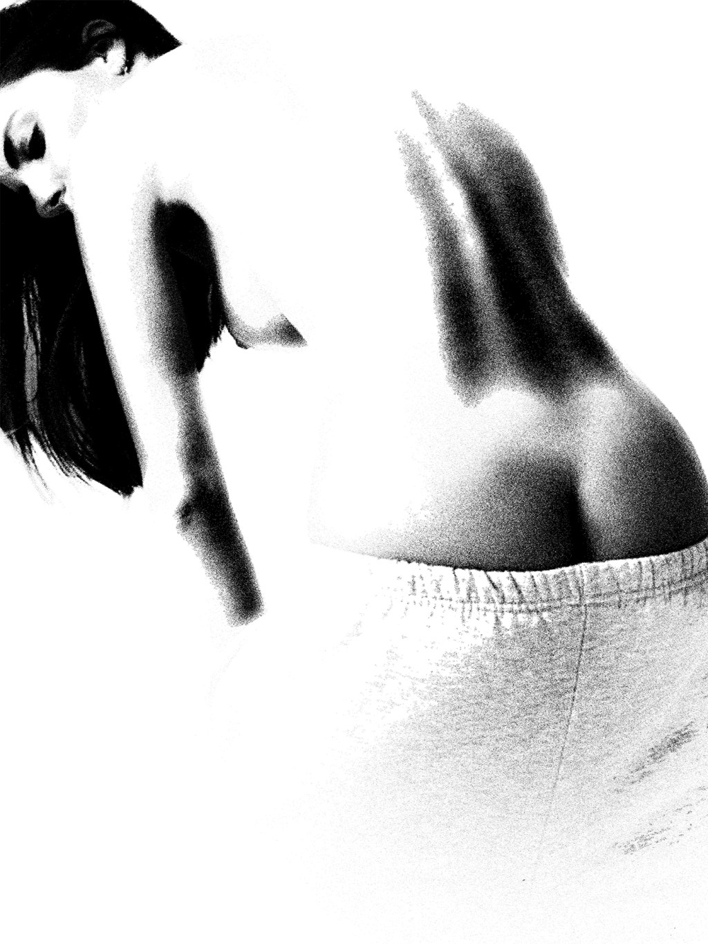 Light glides along her spine, tender as breath, revealing the quiet architecture of being. There is no pose—only the stillness of awareness, the body caught between motion and thought.