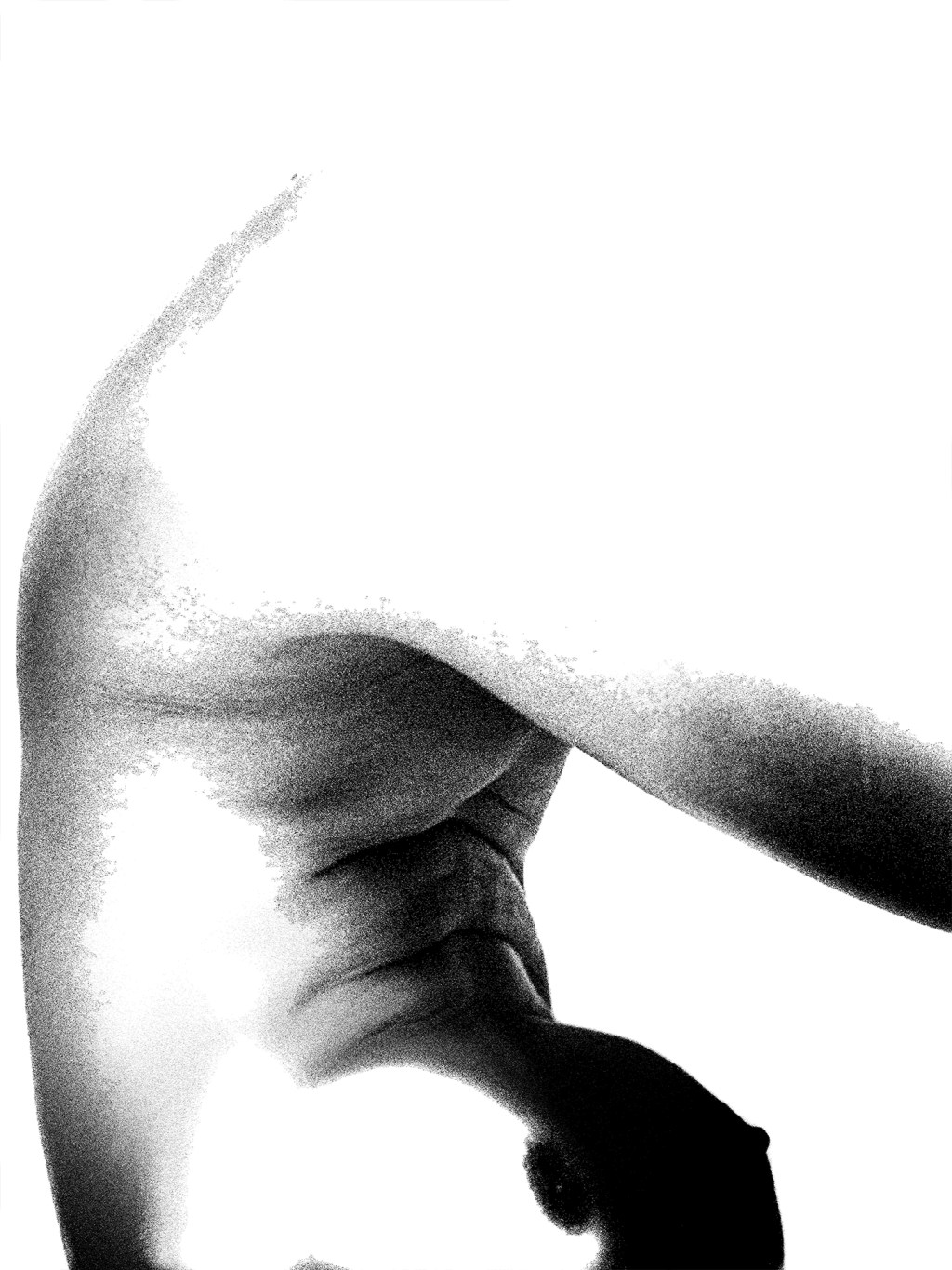The body bends into abstraction, its motion distilled into a single breath. Light drapes across the curve like thought over memory—subtle, deliberate, infinite. What’s unseen hums louder than form.