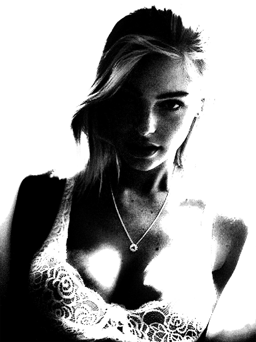 Soft lace meets the weight of her gaze—delicate, but far from fragile. The light doesn’t just touch her; it obeys her, tracing beauty that owns its power.